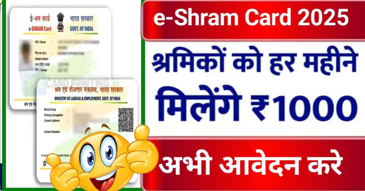 E Shram Card 2025 :असंगठित श्रमिको के लिए नई रजिस्ट्रेशन शुरू, हर महीने 1000 सहायता बीमा और पेंशन का लाभ